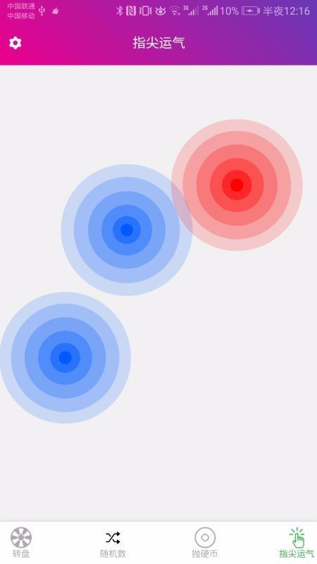 5、玩指尖轮盘的游戏,进入指尖运气页面就能点触其中的轮盘并查看轮流结果;